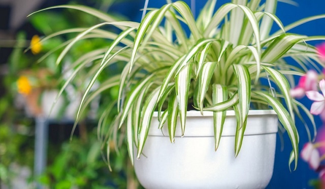 - Хлорофитум: эффективно поглощает угарный газ и формальдегид. Поставьте его рядом с газовой плитой, и он снизит концентрацию вредных веществ до 86%.