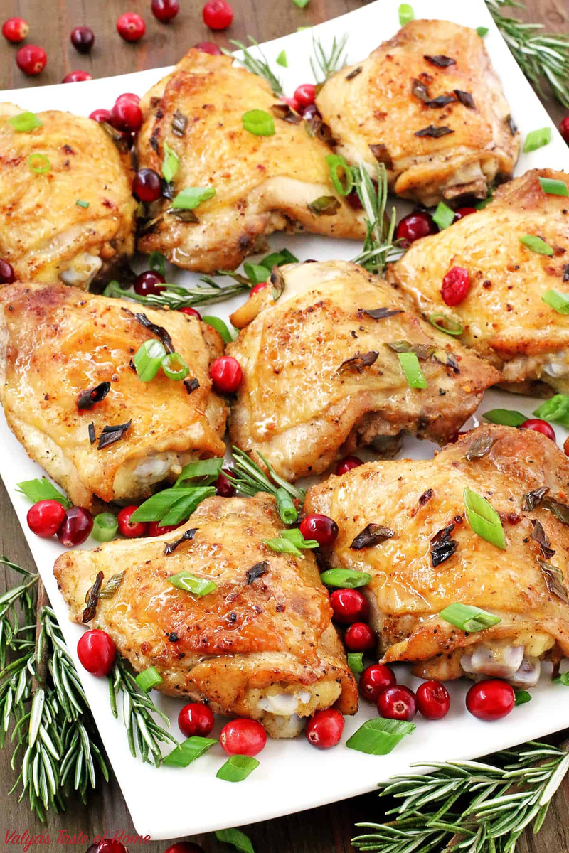 Рождественская курица — это изделие, которое обязательно должно присутствовать на столе в канун праздника. В традиции передавать целую жареную курицу, однако в этом рецепте акцент сделан на куриные бедра, что делает блюдо особенно вкусным и апетитным.