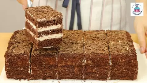 На плоское блюдо помещают первый корж, под него подкладывают полоски пергамента для легкости уборки. На корж выкладывается треть крема, затем укладывается второй корж и повторяется процесс. После укладывается третий корж, а торт покрывается оставшимся кремом с боков и сверху.