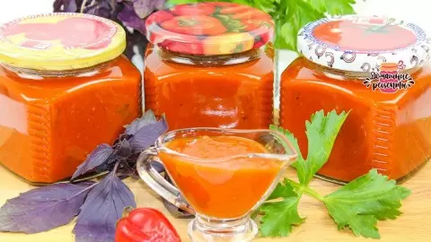 Готовый кетчуп разложить по стерилизованным банкам и закрыть стерилизованными крышками. Стерилизация самих банок не требуется. Ваш домашний кетчуп из помидоров с пряностями и ароматной зеленью готов, доставляя удовольствие на протяжении всей зимы.
