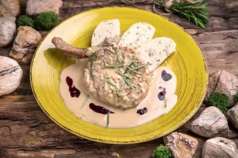 Кролик в сливочном соусе – это не только изысканный вкус, но и эффектная подача. Это блюдо станет настоящим украшением любого праздничного стола. Подается кролик в сливочном соусе в хлебных «тарелочках», что не только добавляет креативности, но и позволяет наслаждаться порцией вместе с аппетитным хлебом.