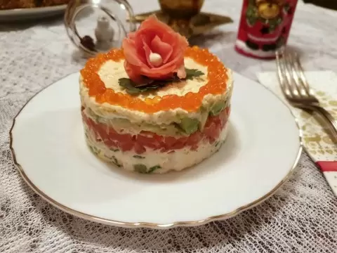 Салат, который станет настоящим украшением любого стола, легко приготовить благодаря доступным ингредиентам. Вместо семги можно использовать любую красную слабосоленую рыбу, а отсутствие картофеля делает его не только легким, но и сытным.