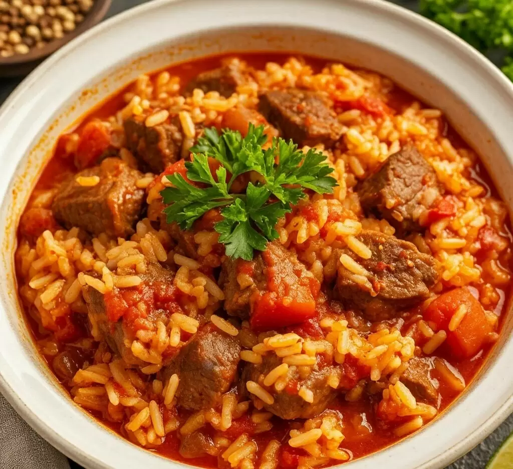 Рис с мясом и помидорами — это просто находка для любителей сытной домашней еды. В этом блюде каждый компонент наполняет рис своим ароматом и вкусом, создавая невероятно насыщенное угощение, которое легко приготовить в духовке без особых хлопот.