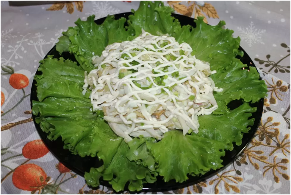 Этот салат из кальмаров — настоящий гастрономический хит, который легко приготовить и который станет украшением любого праздничного стола. Простой, но невероятно вкусный, он прекрасно сочетает в себе морепродукты и овощи.