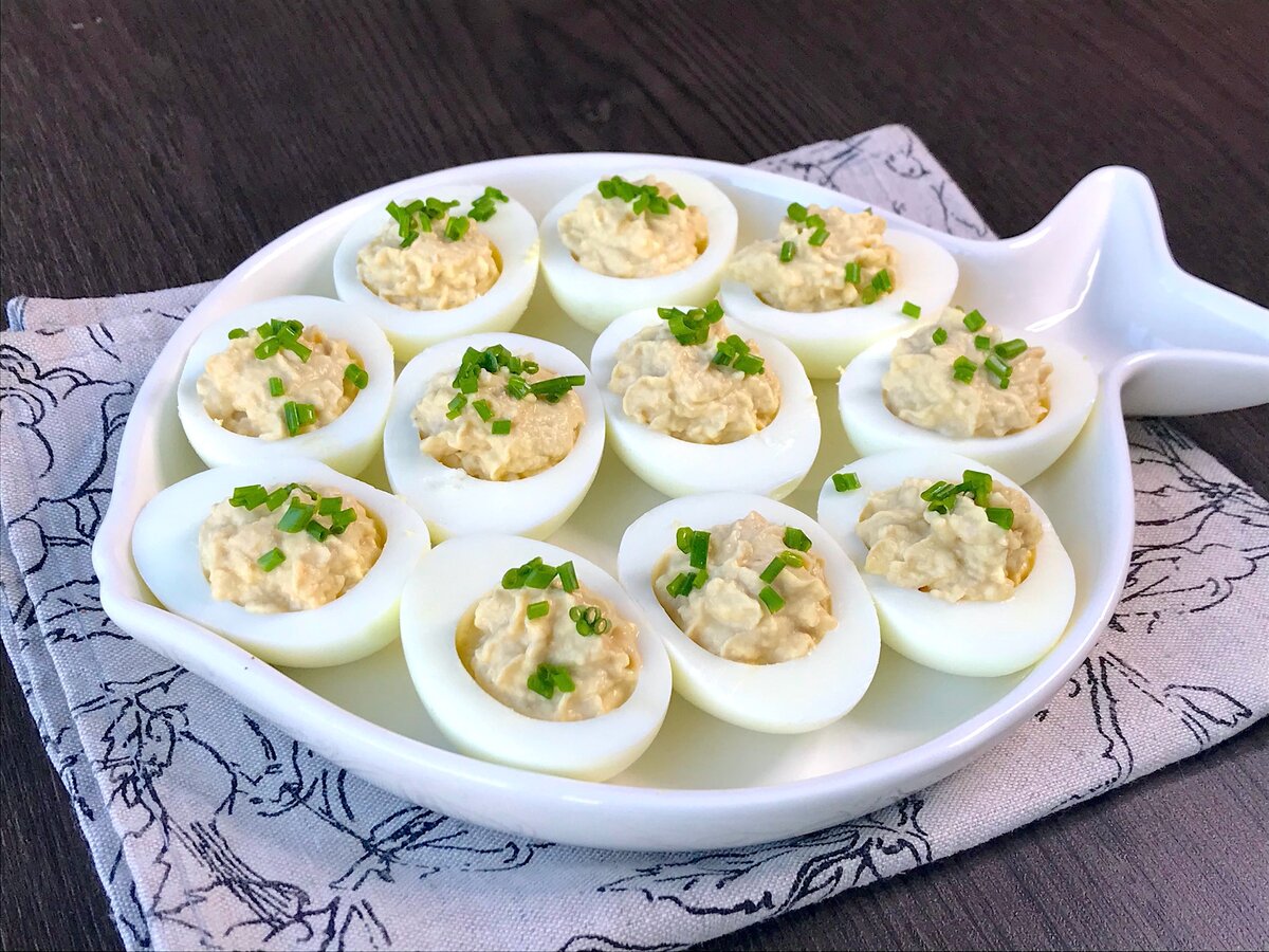 Белки, которые остались, выглядят идеально! Получившуюся массу можно переложить в кулинарный шприц и начинить половинки белков. Для украшения отлично подойдет шнитт-лук — так закуска будет выглядеть привлекательно на любом столе.