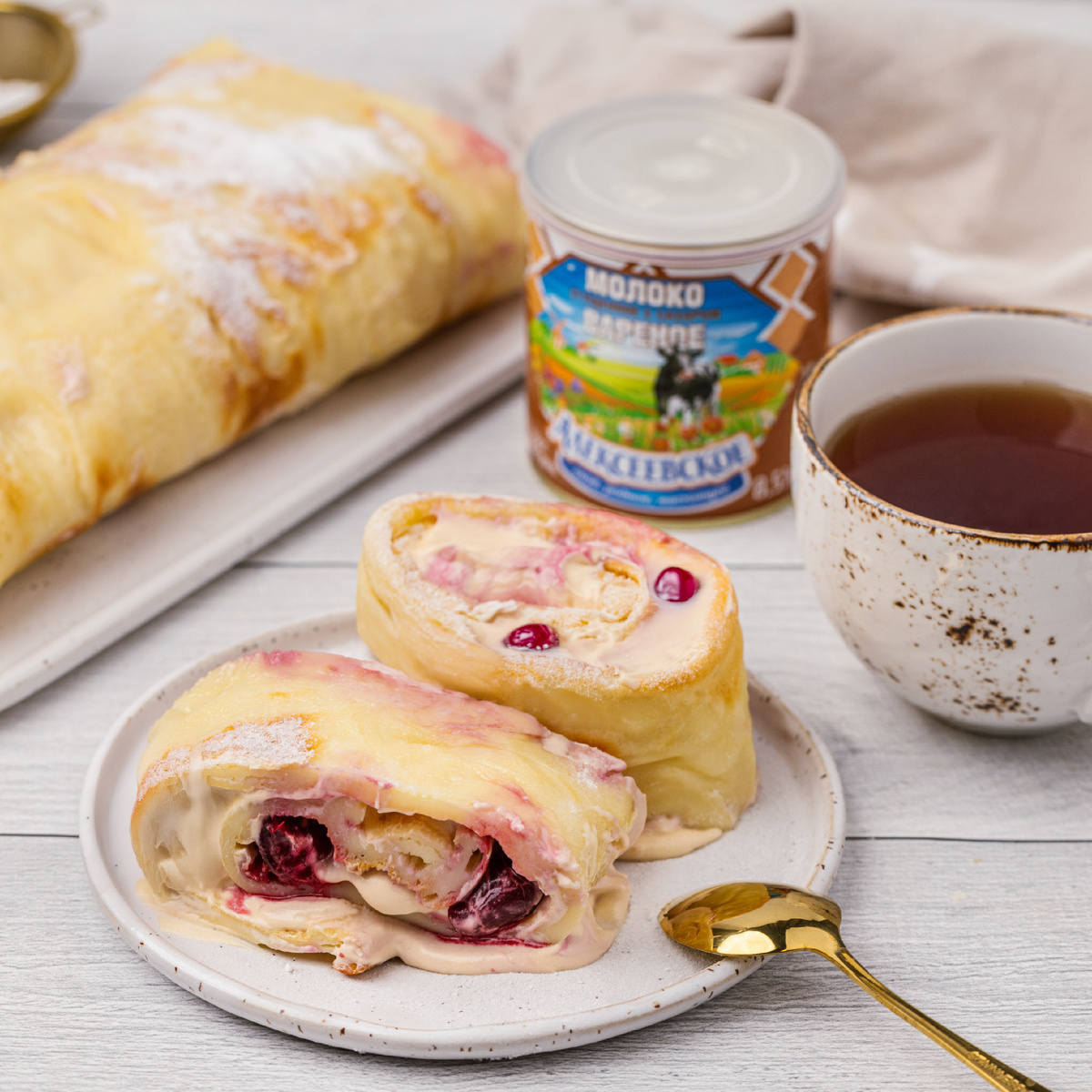 Финские блины — это нечто удивительное: легкие и воздушные, они напоминают бисквит. Этот уникальный десерт готовится в духовке без жарки, что делает его не только простым в приготовлении, но и невероятно вкусным. Блины, выпеченные целиком, приобретают изумительную пористую структуру, которая в сочетании с начинкой на основе вареного сгущенного молока «Алексеевское» создает настоящий кулинарный шедевр с карамельными оттенками.