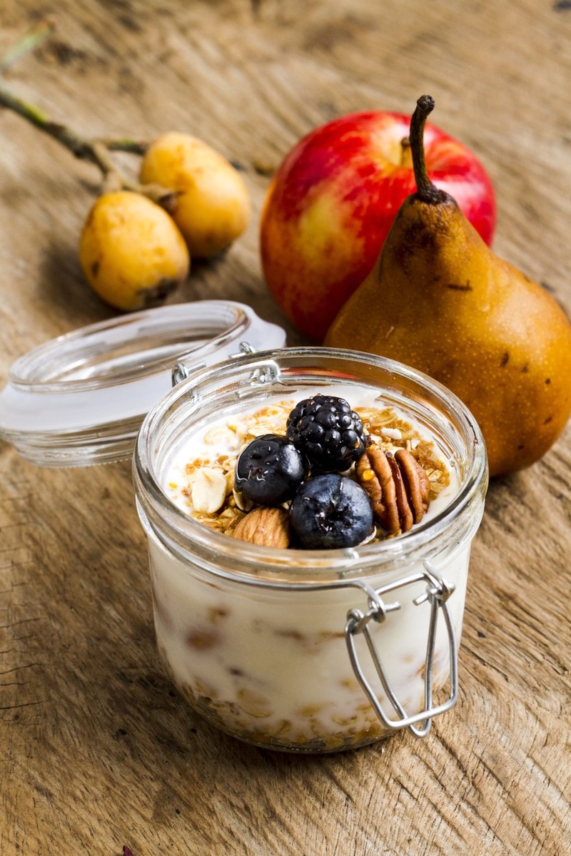 Творог содержит медленный белок, обеспечивающий чувство сытости. Йогурт с пробиотиками улучшает работоспособность кишечника, а орехи снабжают организм магнием и Омега-3, способствующими снижению стресса и тяги к еде.