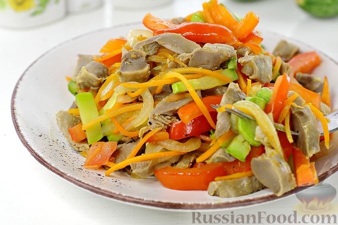 - Салат из куриных желудков с овощами: Нежные куриные желудки прекрасно сочетаются с кабачками, сладким перцем и морковью. Обжаренные до хрустящей корочки овощи придают блюду удивительную легкость, а соевый соус добавляет пикантности. Например, компот из лука и чеснока создает впечатляющий вкус.