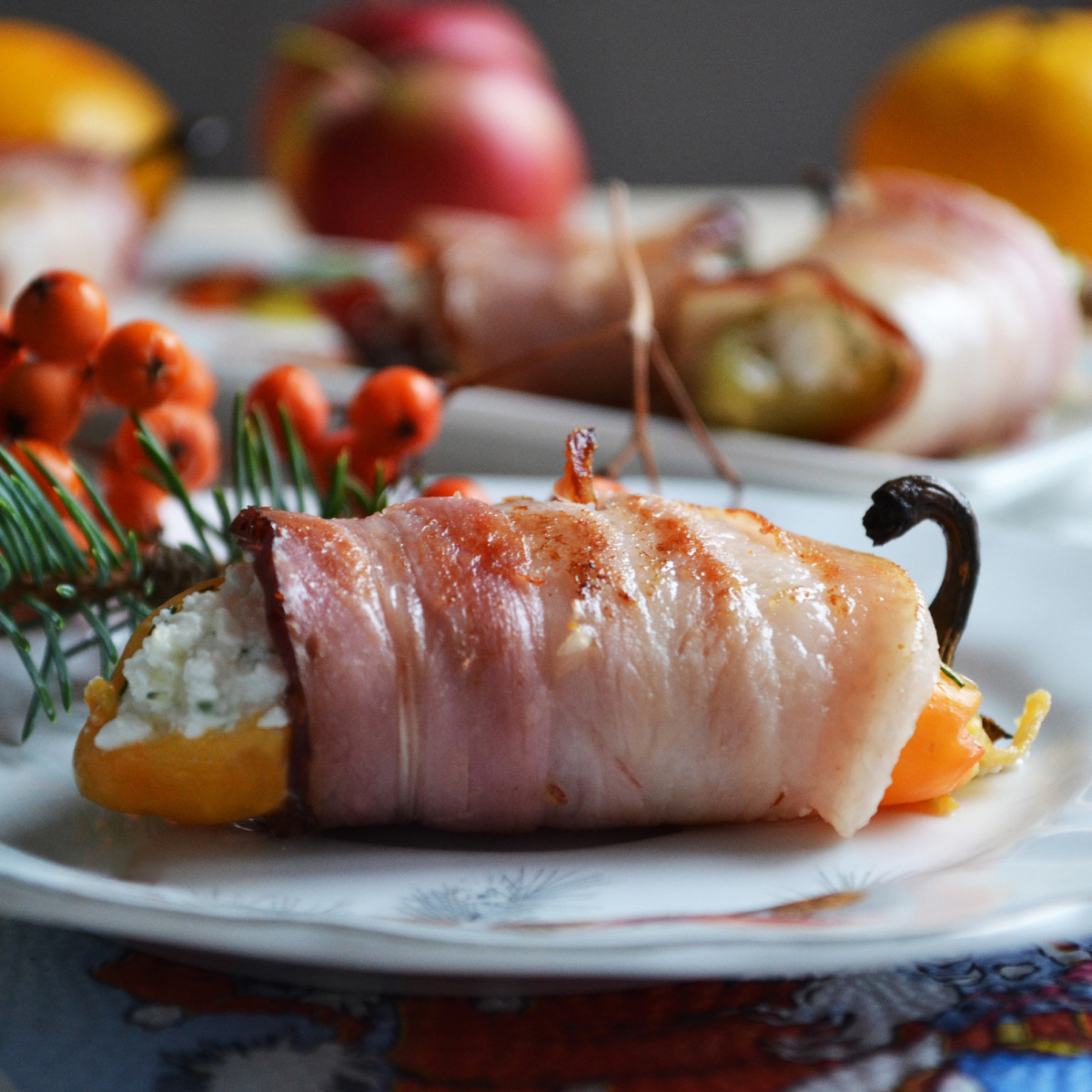 Обверните каждый перец в тонкую полоску бекона и обжарьте на сковороде по одной минуте с каждой стороны, пока бекон не станет золотистым и хрустящим. Аромат обжаренного бекона просто завораживает!