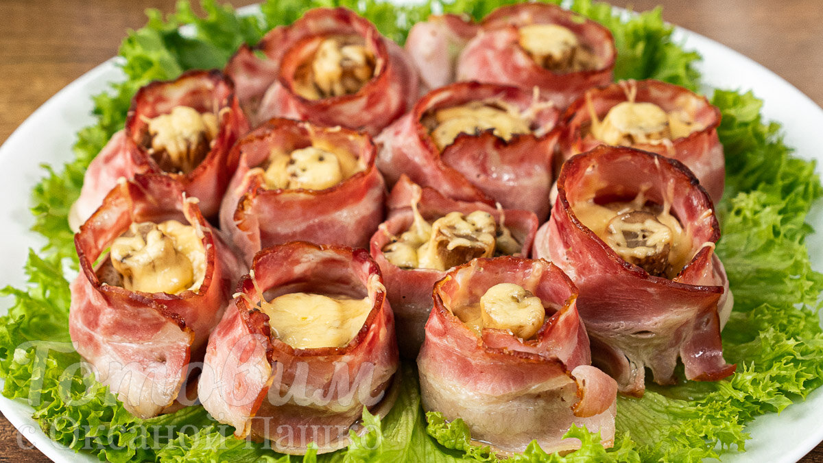 Готовая закуска из шампиньонов в беконе отличается восхитительным вкусом и привлекательным видом, подходит как в горячем, так и в холодном виде. Приготовить такое угощение под силу любому, даже начинающему кулинару!