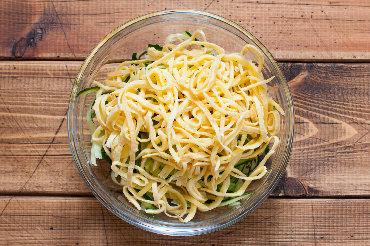 По традиции основой салата «Нежный» служит филе куриной грудки. Комбинация отварного куриного мяса, тонко нарезанных яичных блинчиков и слегка пикантного маринованного лука создаёт невероятно сочное и ароматное блюдо, наполняющее дегустатора мягкостью и нежностью.