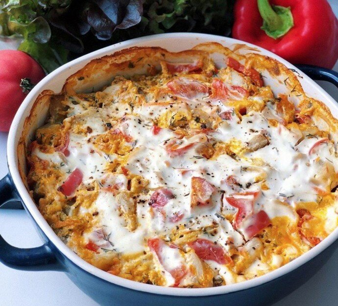 Вдохновляющая рыбная запеканка с помидорами и сладким перцем