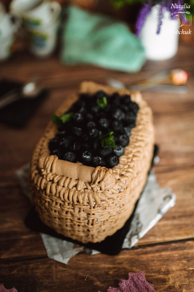 На первом корже аккуратно распределяется пропитка и крем с черносмородиновым конфе, затем накладывается последующий корж, и так далее. После завершения сборки торт оборачивается пленкой и отправляется в холодильник на несколько часов для лучшего пропитывания. Готовый десерт можно украсить свежей черникой или голубикой, чтобы добавить яркий акцент.