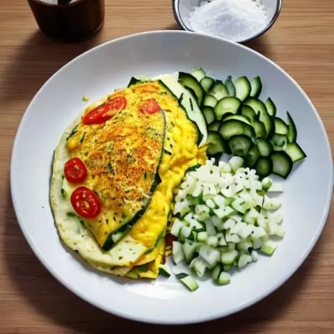 - Омлет с овощами — классика, которая всегда в моде. Взбейте яйца, добавьте кубики помидоров, огурцов и немного тертого сыра.