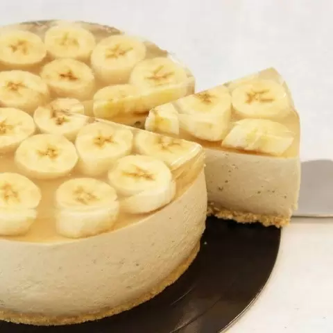 Перед подачей нарежьте бананы кружочками и выложите их на чизкейк. Аккуратно залейте желе. Поставьте десерт в холодильник еще на 5 часов, чтобы все слои хорошо закрепились.