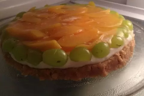 Начинается все с желатина. 15 г нужно развести в воде, согласно инструкции на упаковке, и оставить для набухания на полчаса. Для персиков с одной банки слейте сироп и замочите оставшийся желатин в этом сиропе.Печенье размельчите в крошку и смешайте с мягким сливочным маслом. Убедитесь, что масса однородная, затем выложите ее в разъемную форму. Равномерно распределите по дну и тщательно утрамбуйте. Уберите в холодильник.Далее — работа с желатином. Соедините желатин из первого этапа с небольшим количеством воды и немного подогрейте, помешивая, избегая кипения. Охладите до теплого состояния.Взбейте сливки, сахар и щепотку ванилина до полного растворения сахара. Далее добавьте творог и тщательно перемешайте до однородности. В конце вмешайте охлажденный желатин.Залейте получившуюся массу на основу и поставьте в холодильник на 1-2 часа, чтобы чизкейк застыл.Подогрейте сироп с замоченным желатином, не доводя до кипения, и дайте немного остыть.Нарежьте персики дольками и аккуратно выложите их на застывший чизкейк. Залейте десерт остывшим желатиновым сиропом и верните в холодильник еще на 2-3 часа.Этот десерт станет прекрасным завершением любого обеда или ужина. Приятного аппетита!