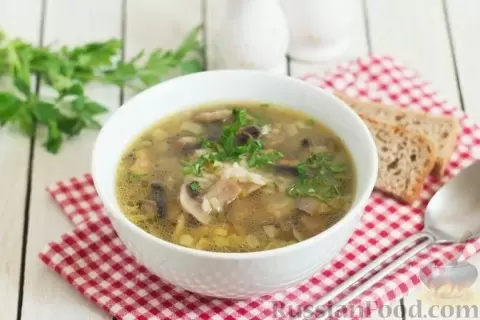 Для любителей грибов, грибной суп с рисом — это настоящий праздник. Грибы обжариваются с луком, а затем сочетаются с отварным рисом в грибном бульоне. Такой простой, но вкусный суп идеально подходит для обеденного стола.
