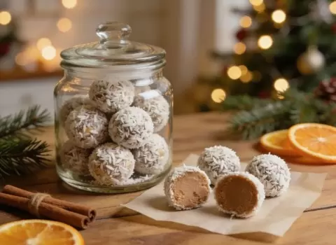 Сегодняшние ПП-конфеты "Новогодние снежки" — это отличная альтернатива привычным магазинным лакомствам. Без рафинированного сахара и с использованием только натуральных ингредиентов — они сочетают в себе вкус и пользу. Основные компоненты конфет: финики, орехи и кокос. Они не только заиграют на праздничном столе, но и порадуют своими питательными свойствами, богатством клетчатки и полезными жирами. Рецепт рассчитан на 25–30 штук, а калорийность одной конфеты составляет всего 80–100 килокалорий.