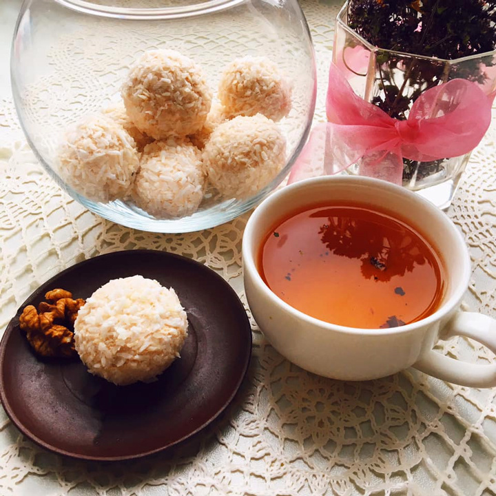 Из творожной массы сформируйте небольшие «снежки», в каждую из которых положите орех. Затем обваляйте конфеты в кокосовой стружке. Такой десерт станет ярким акцентом на вашем столе.