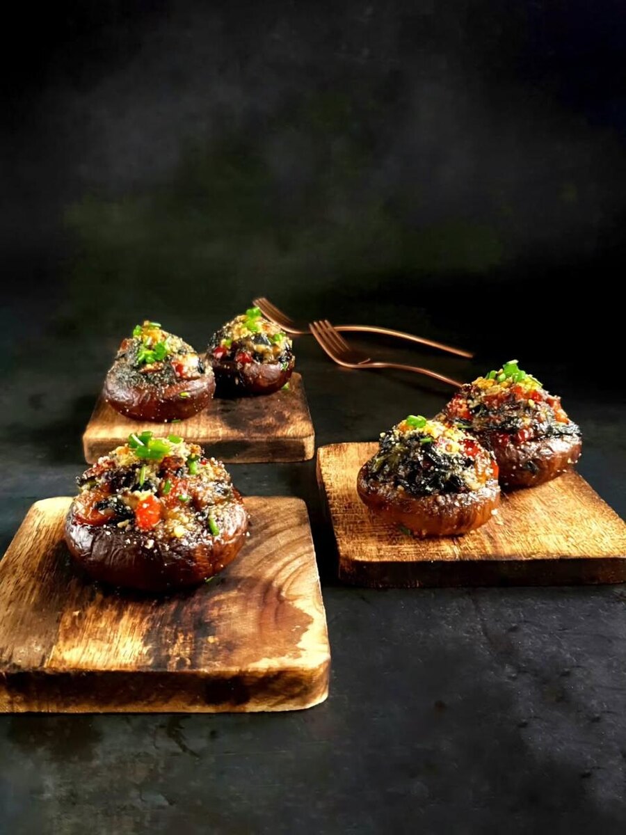 Фаршированные грибы портобелло — это удивительное блюдо, которое сочетает в себе вкусные и полезные ингредиенты. В этом рецепте фаршированные грибы наполняются сочным шпинатом и выдержанным козьим сыром, что делает его идеальным выбором как для обеда, так и для вечеринки.